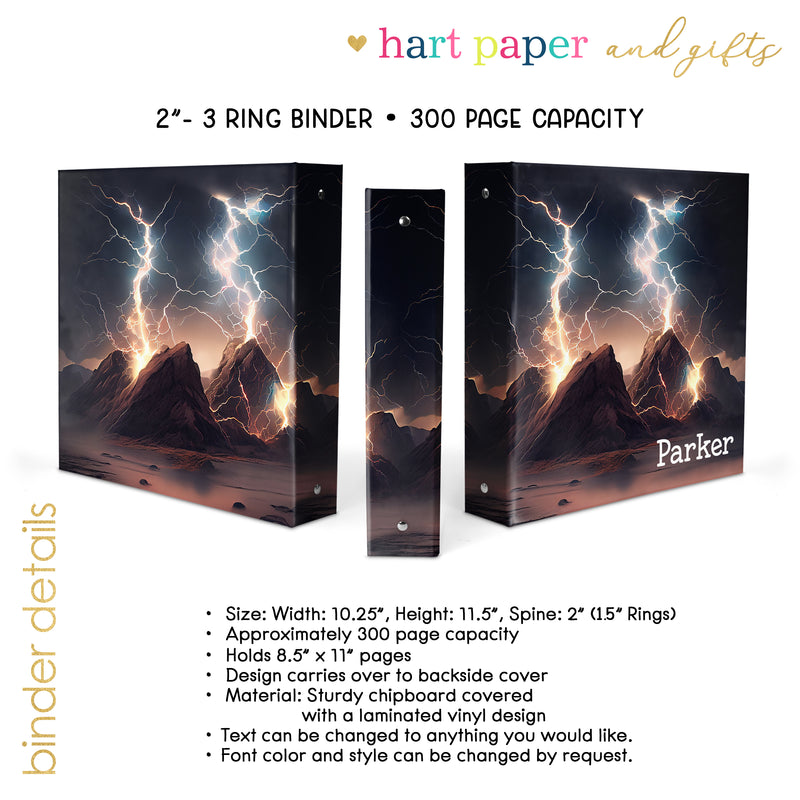 Lightening Weather Personalized Custom 2" 3 Ring Binder • School Office Supplies