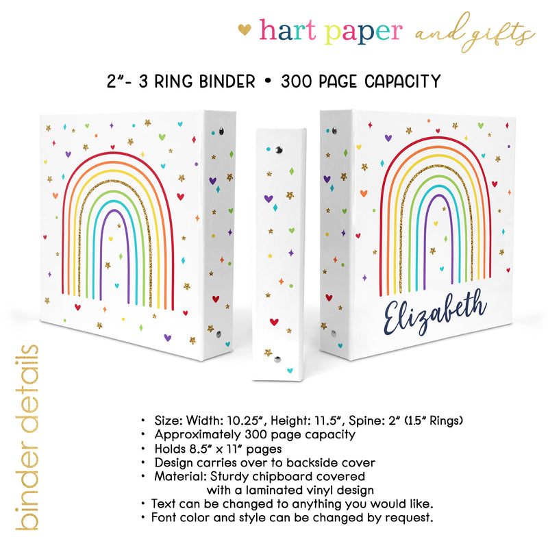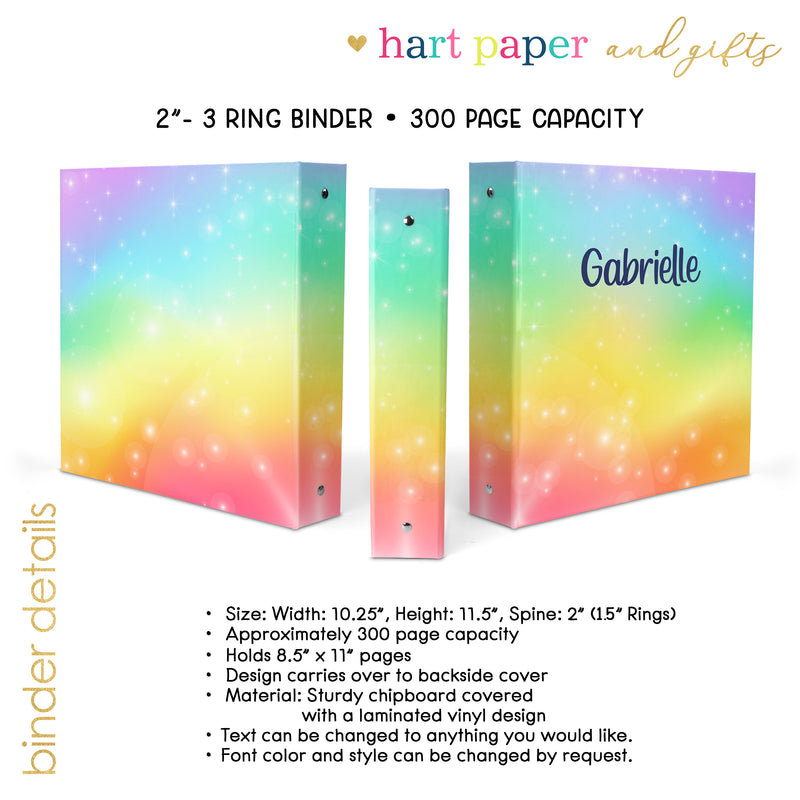 Rainbow Personalized Custom 2" 3 Ring Binder • School Office Supplies