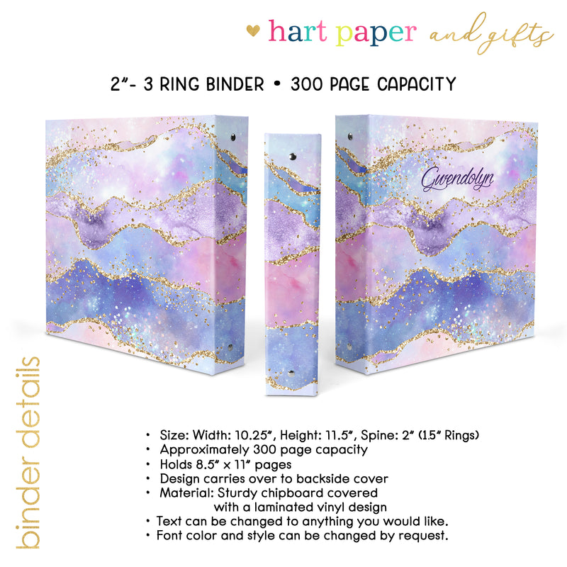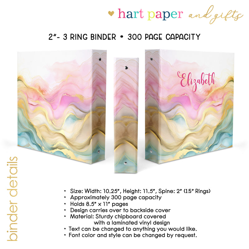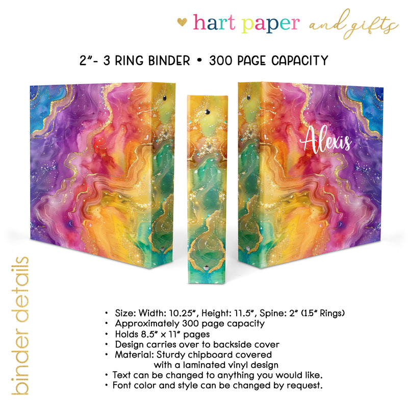 Rainbow Ink Marble Personalized Custom 2" 3 Ring Binder • School Office Supplies