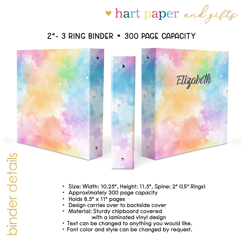 Rainbow Tie Dye Personalized Custom 2" 3 Ring Binder • School Office Supplies