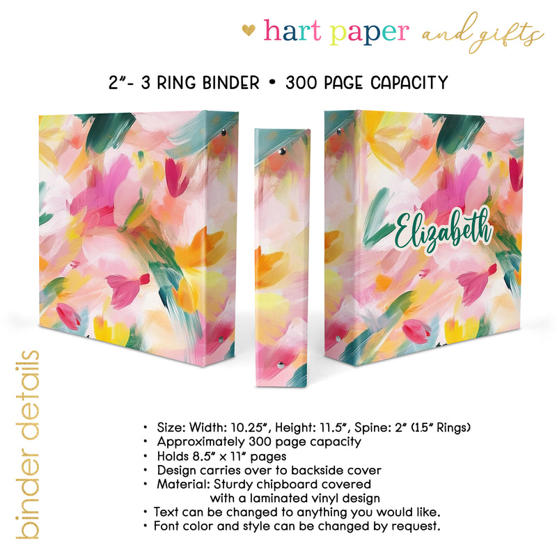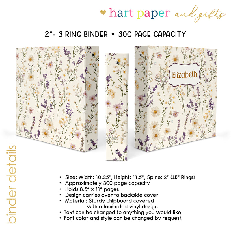 WildFlowers Personalized Custom 2" 3 Ring Binder • School Office Supplies