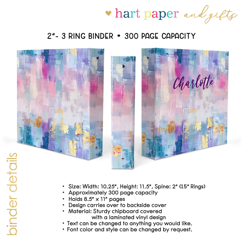 Our custom 3-ring binders are perfect for organizing schoolwork, home office papers, family recipes, keepsakes, and more. Each binder is personalized with a name or monogram and comes in a variety of fun and stylish designs for boys, girls, teens, and adults. Great for back-to-school supplies, teacher gifts, or holiday presents. Pair with our matching folders, clipboards, and notebooks for a complete personalized stationery set.