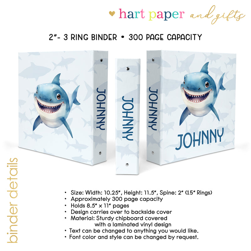 Shark Personalized Custom 2" 3 Ring Binder • School Office Supplies