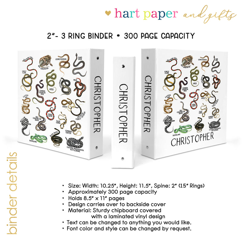 Snake Animal Personalized Custom 2" 3 Ring Binder • School Office Supplies