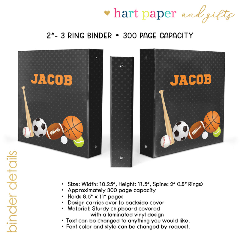 Sports Personalized Custom 2" 3 Ring Binder • School Office Supplies