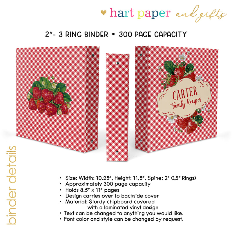 Strawberry Personalized Custom 2" 3 Ring Recipe Book Binder