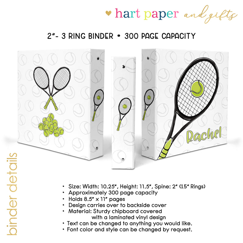 Tennis Sports Personalized Custom 2" 3 Ring Binder • School Office Supplies