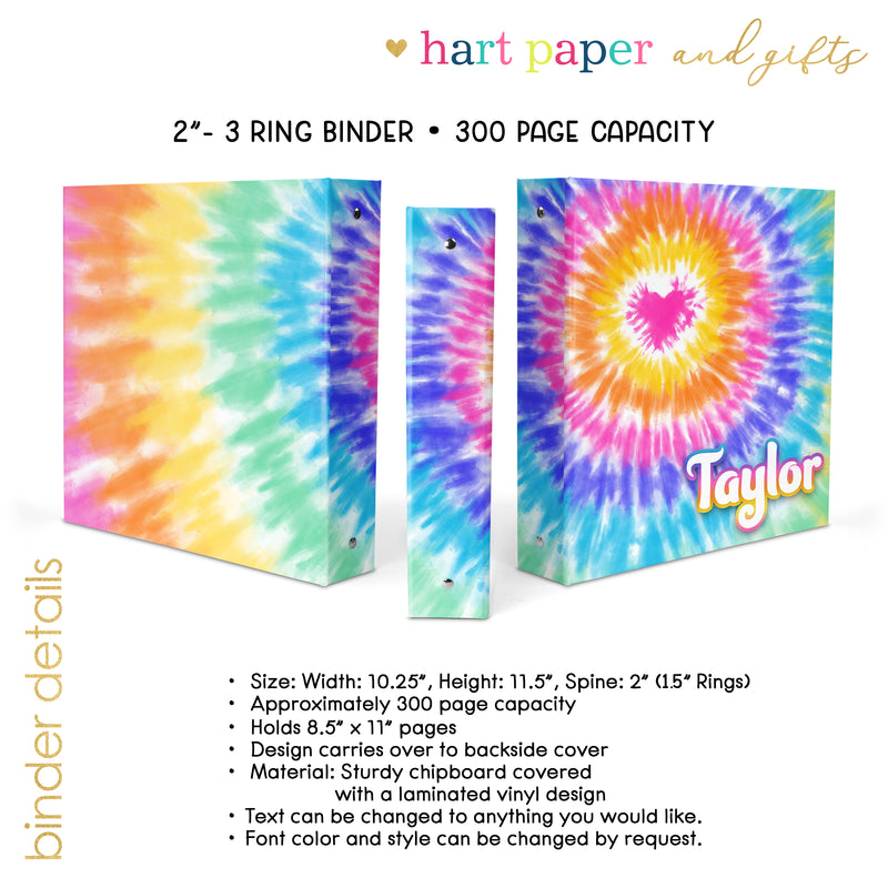 Rainbow Heart Tie Dye Personalized Custom 2" 3 Ring Binder • School Office Supplies