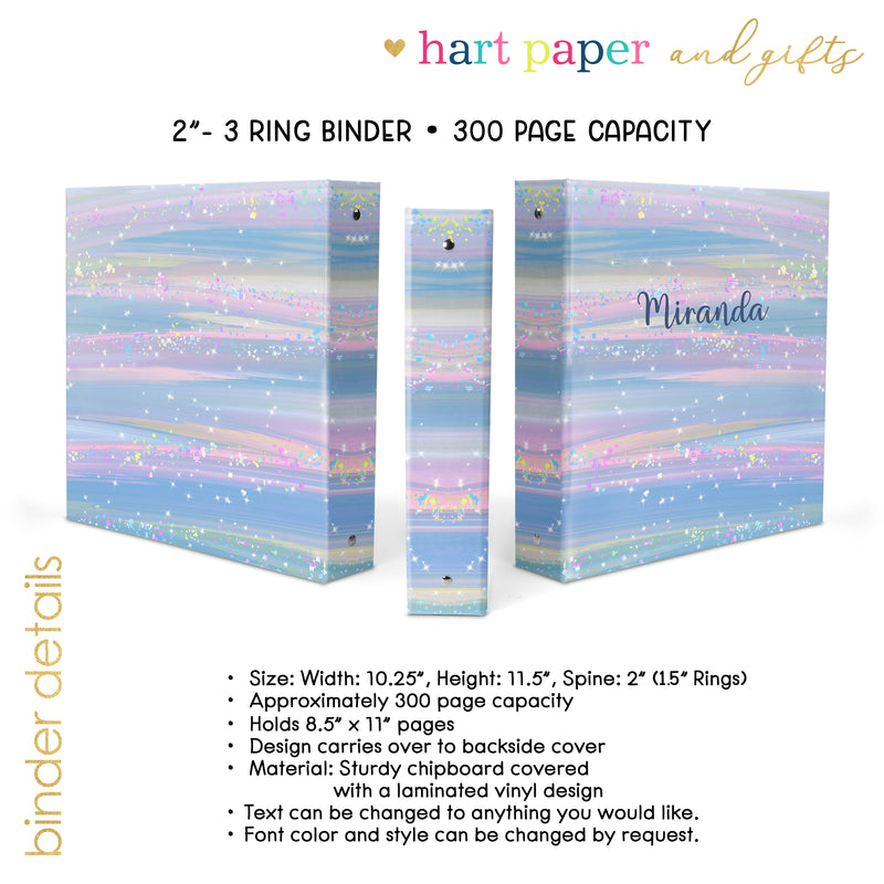 Galaxy Rainbow Stars Personalized Custom 2" 3 Ring Binder • School Office Supplies