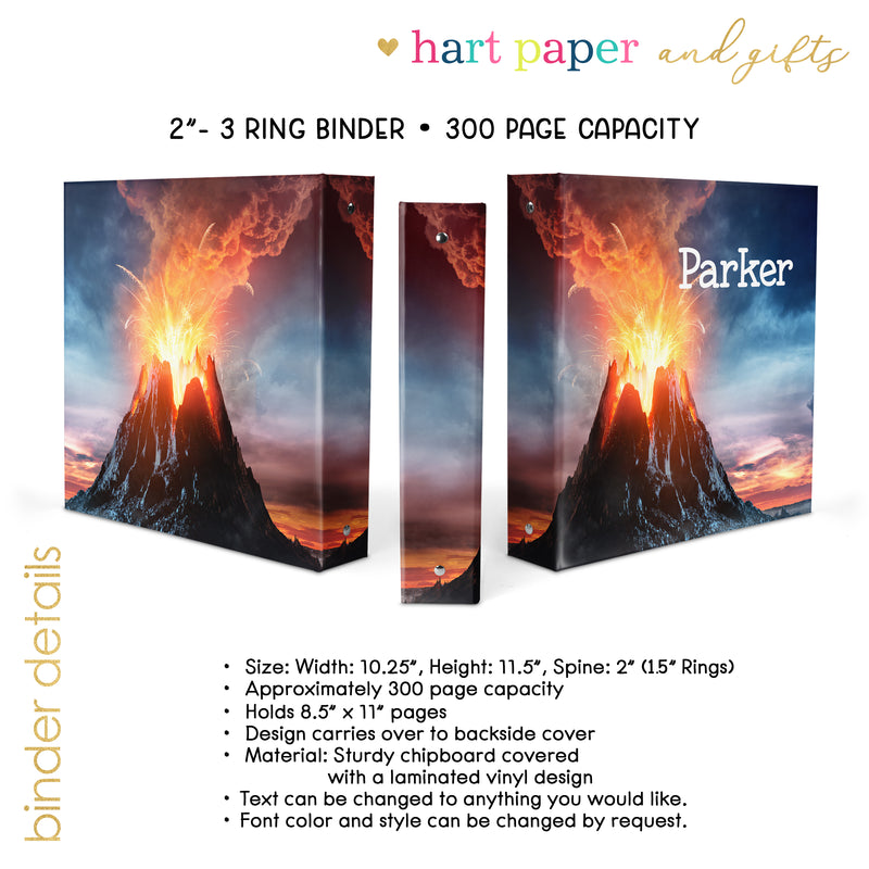 Volcano Personalized Custom 2" 3 Ring Binder • School Office Supplies