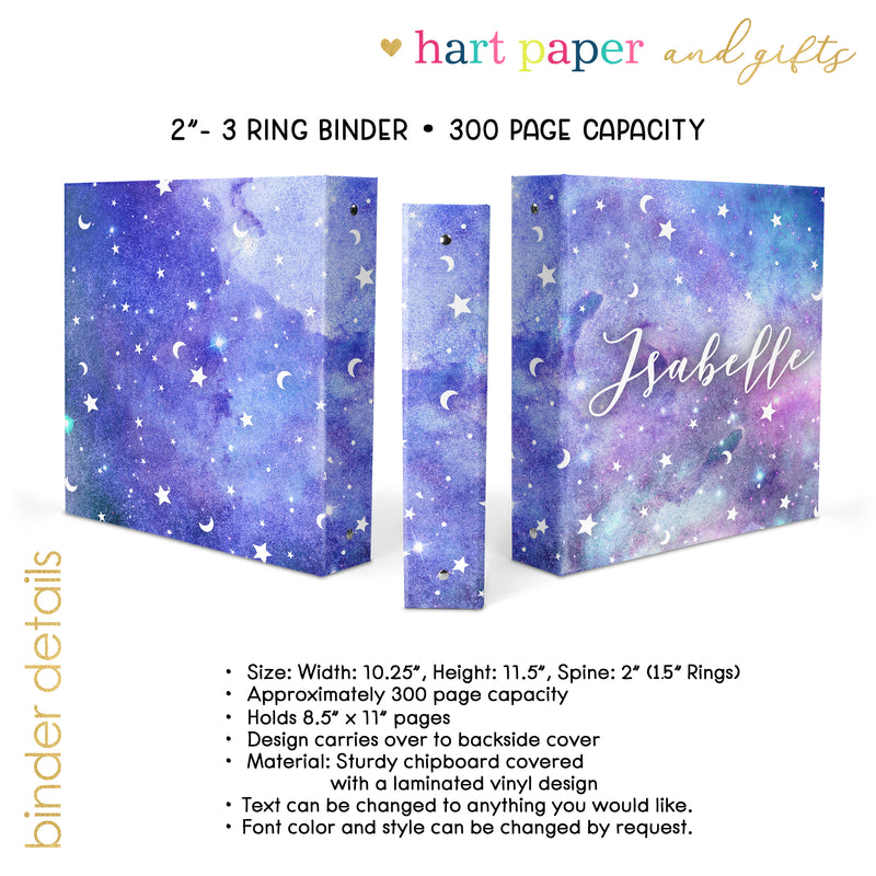 Stars Moons Solar System Personalized Custom 2" 3 Ring Binder • School Office Supplies