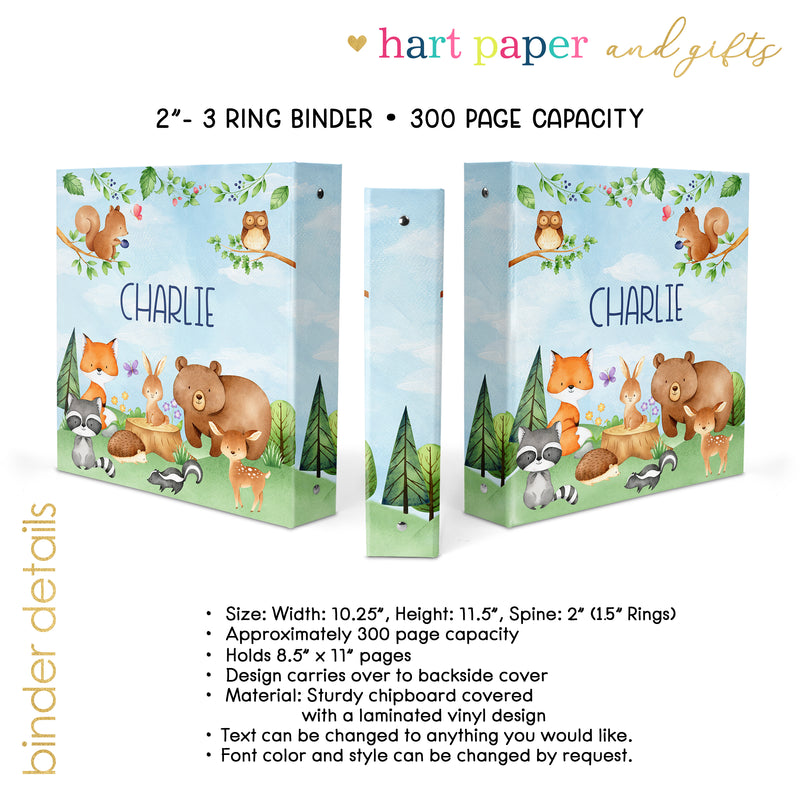 Woodland Animals Personalized Custom 2" 3 Ring Binder • School Office Supplies