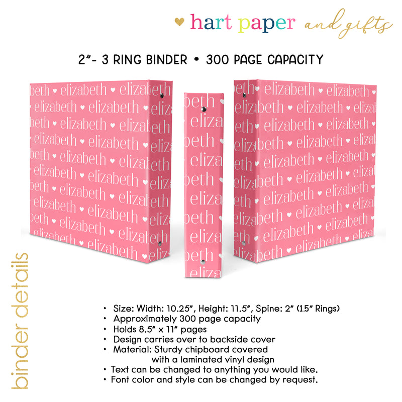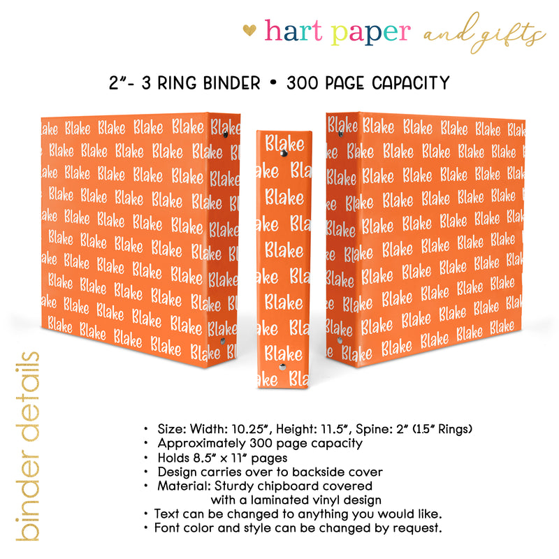 ANY COLOR Repeat Name Personalized Custom 2" 3 Ring Binder • School Office Supplies