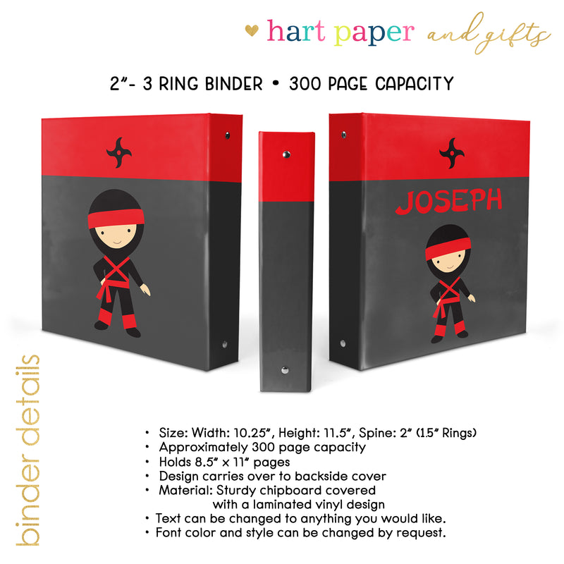 Ninja Sports Personalized Custom 2" 3 Ring Binder • School Office Supplies