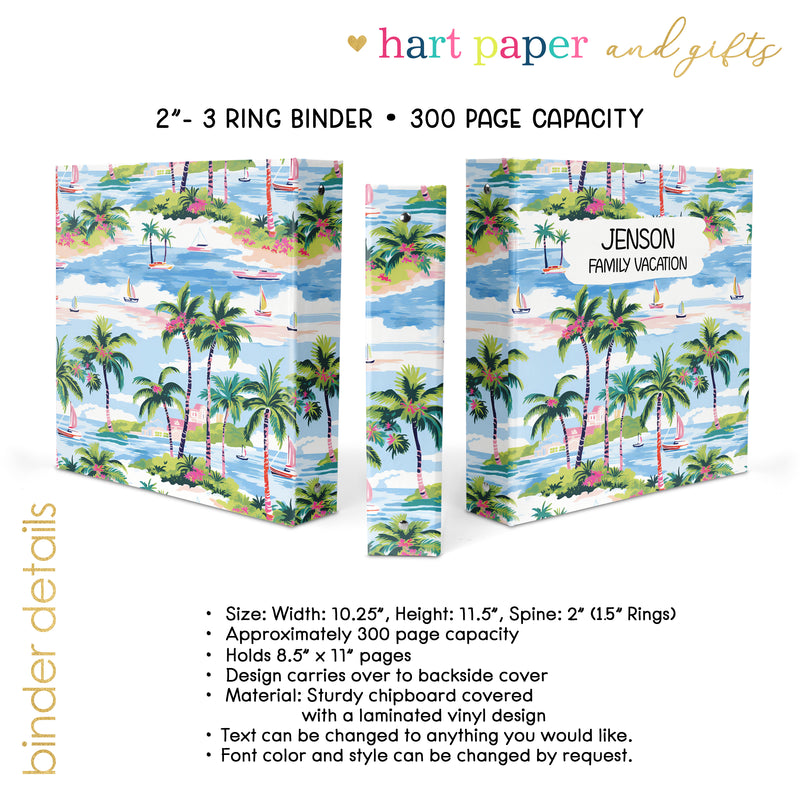 Palm Trees Beach Personalized Custom 2" 3 Ring Binder • School Office Supplies