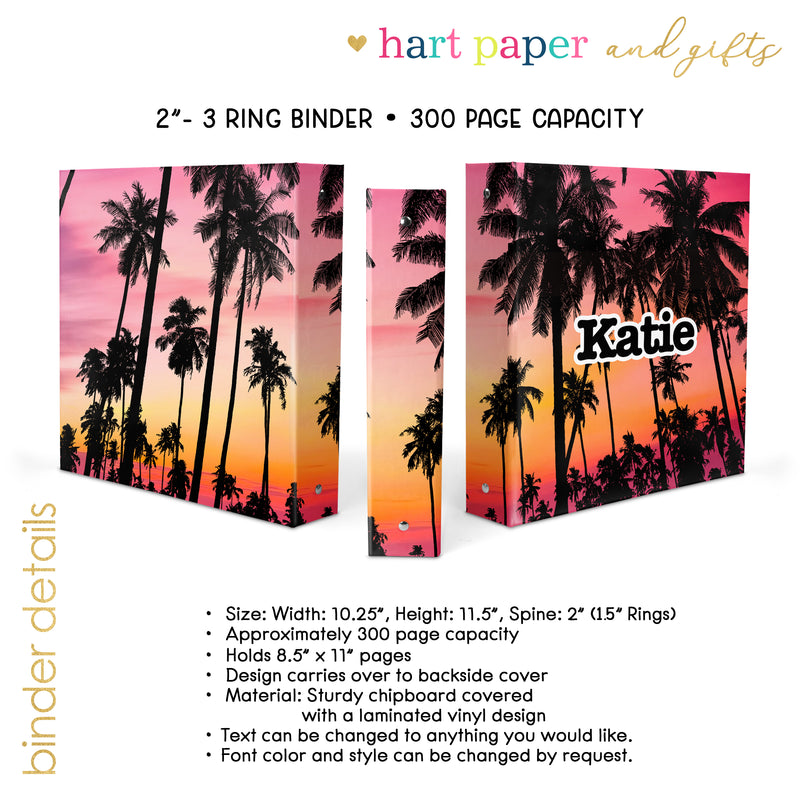 Palm Trees Preppy Beach Personalized Custom 2" 3 Ring Binder • School Office Supplies