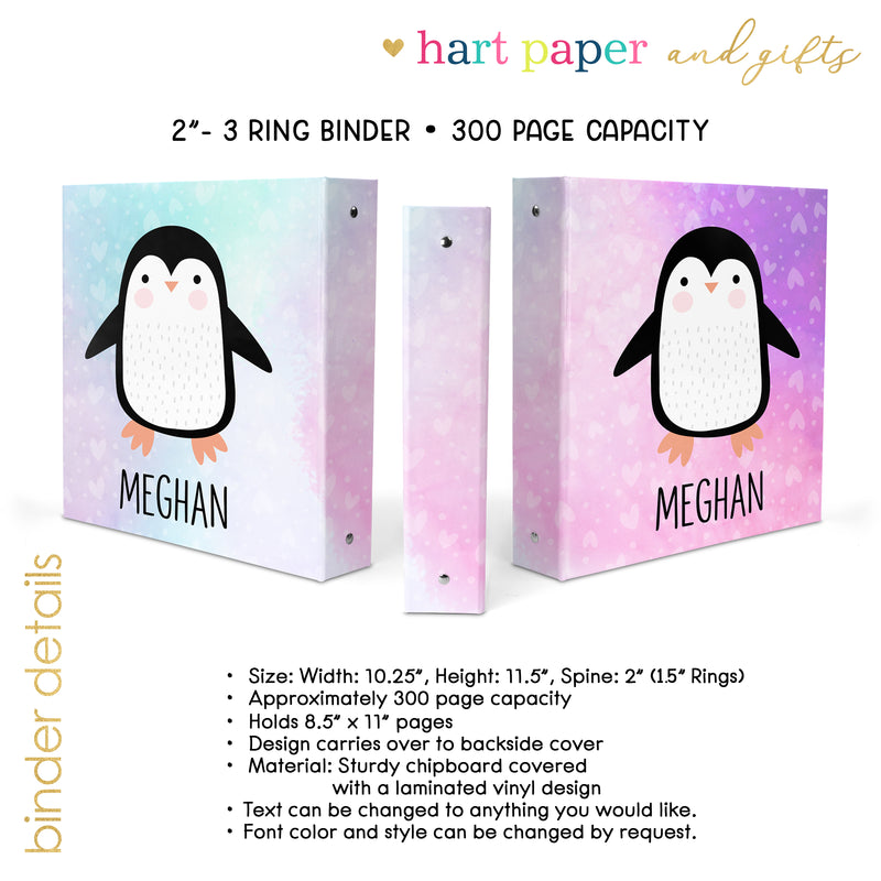 Penguin Animals Personalized Custom 2" 3 Ring Binder • School Office Supplies