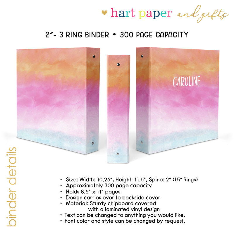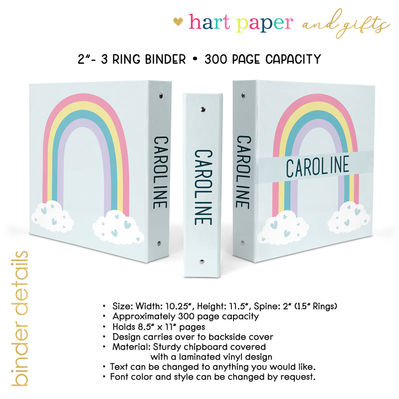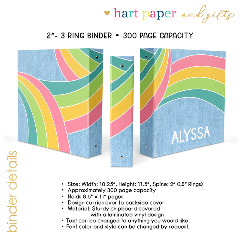 Rainbow Personalized Custom 2" 3 Ring Binder • School Office Supplies