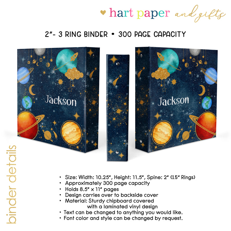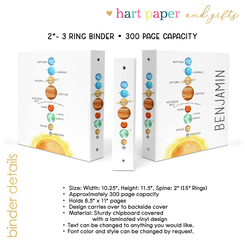 Solar System Planets Personalized Custom 2" 3 Ring Binder • School Office Supplies