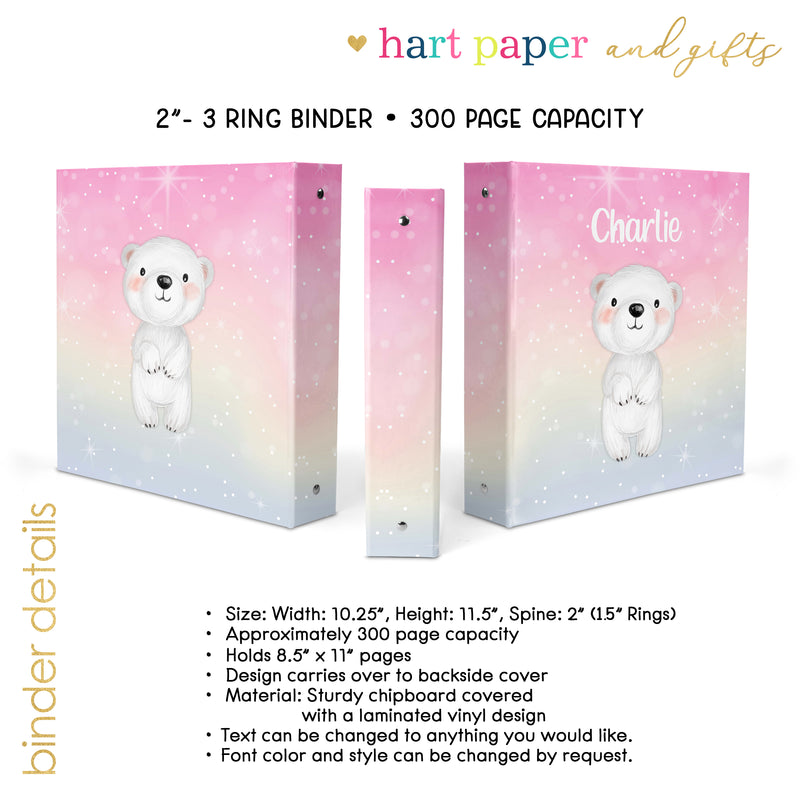 Polar Bear Personalized Custom 2" 3 Ring Binder • School Office Supplies