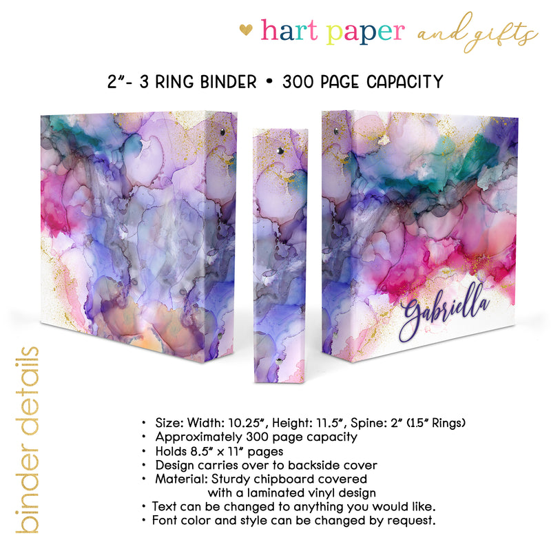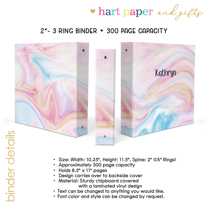 Rainbow Ink Marble Personalized Custom 2" 3 Ring Binder • School Office Supplies
