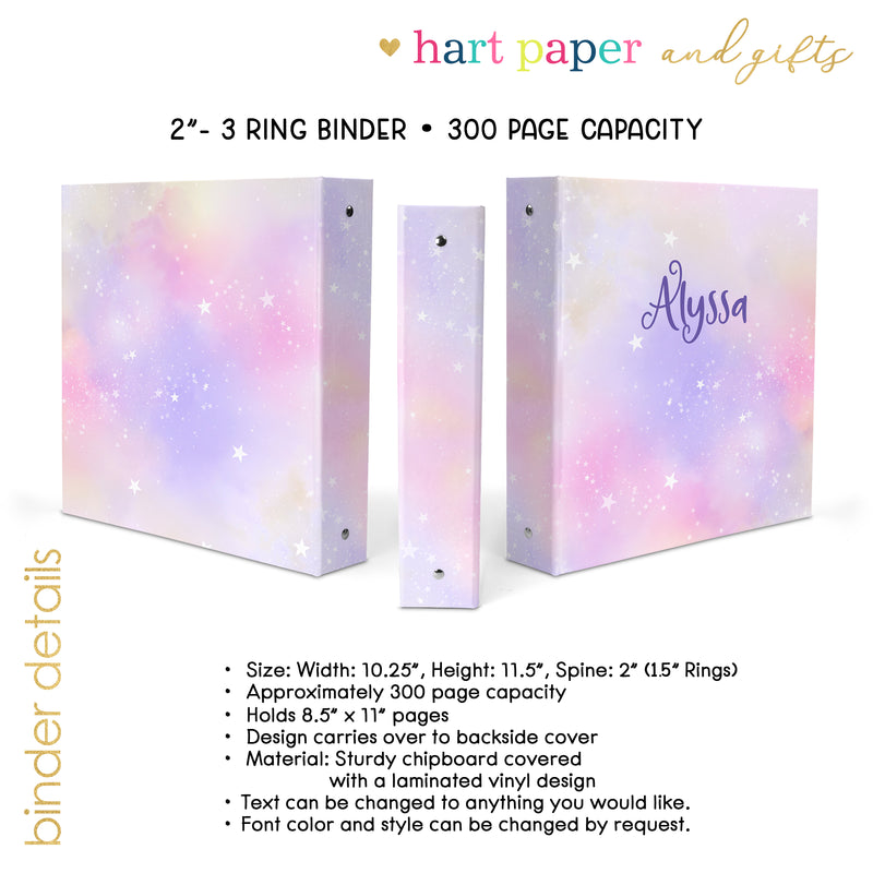Pastel Rainbow Galaxy Stars Personalized Custom 2" 3 Ring Binder • School Office Supplies