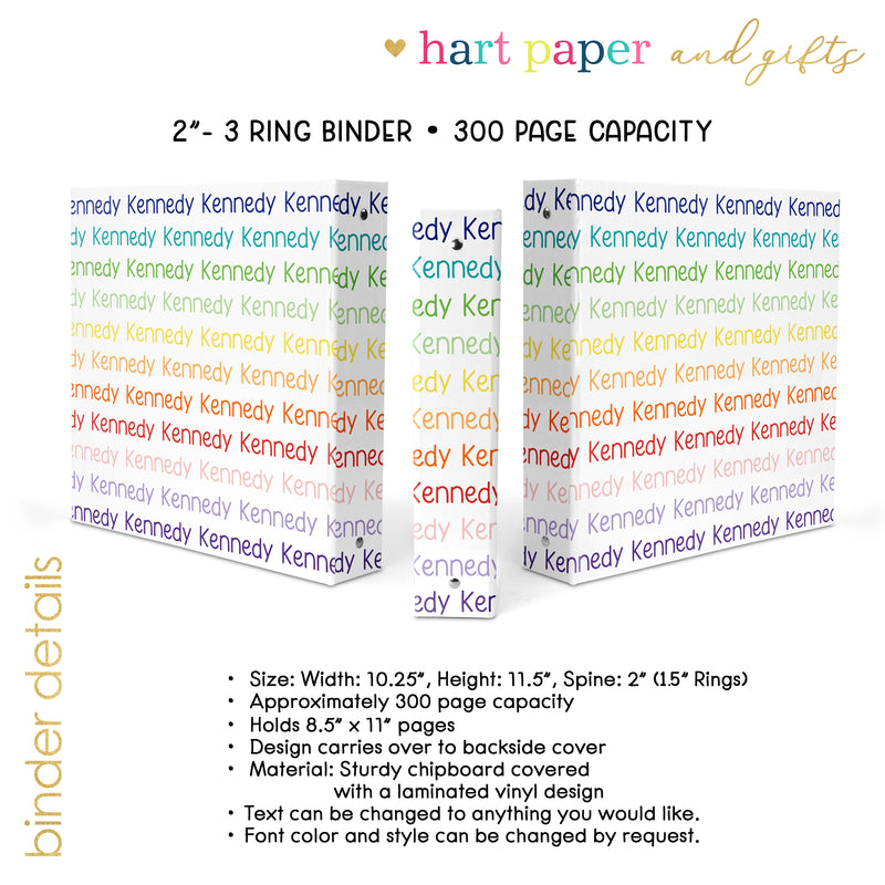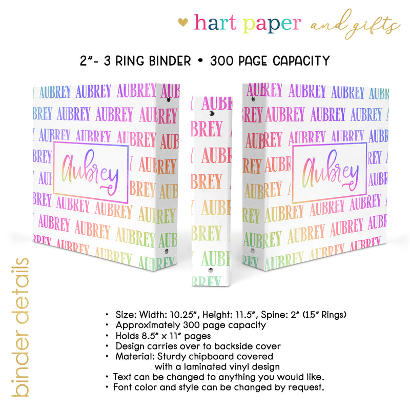 Rainbow Repeat Name Personalized Custom 2" 3 Ring Binder • School Office Supplies