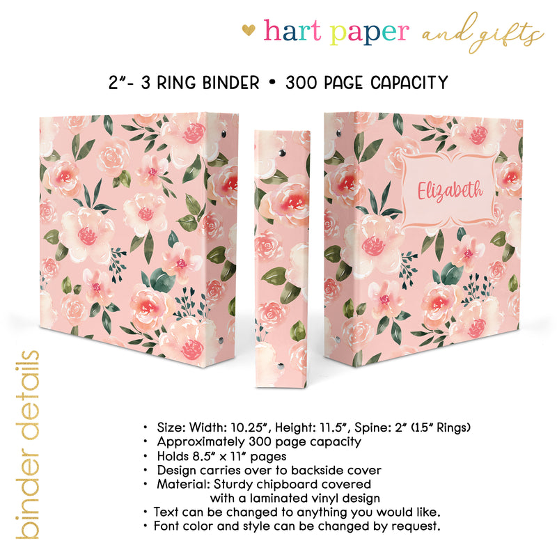 Pink Roses Flowers Personalized Custom 2" 3 Ring Binder • School Office Supplies