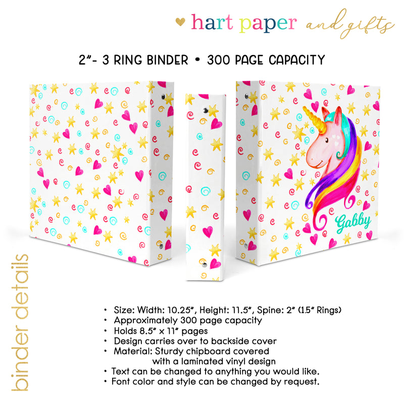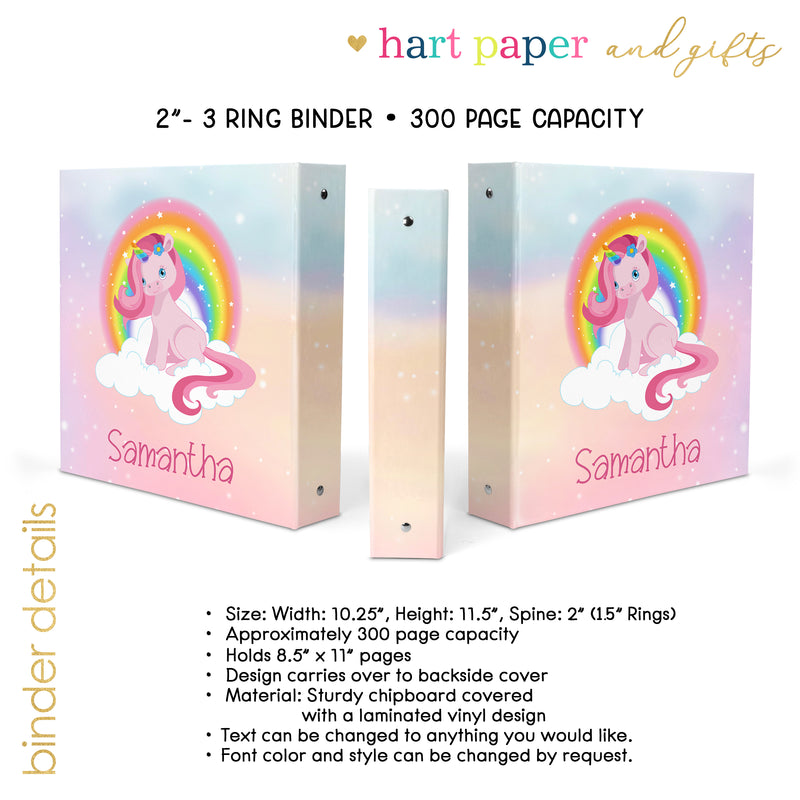 Unicorn Rainbow Personalized Custom 2" 3 Ring Binder • School Office Supplies