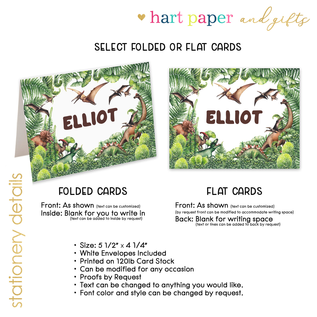 Dinosaur Personalized Note Card Stationery Thank You Cards • Flat or Folded
