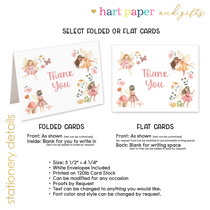 Fairy Thank You Cards Note Card Personalized Custom Stationery • Flat or Folded
