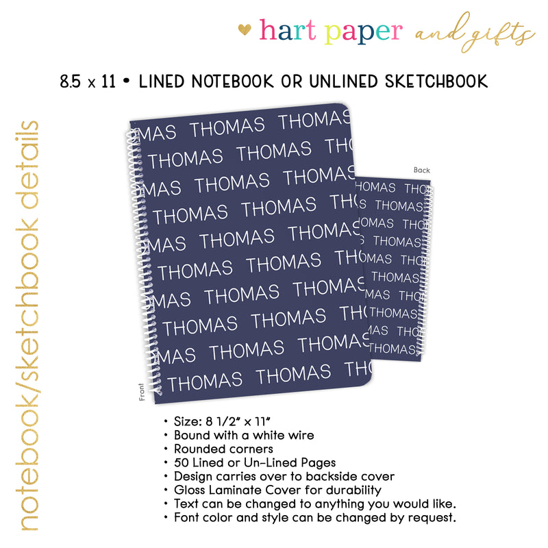 ANY COLOR Repeat Name Personalized Custom Notebook or Sketchbook • School Office Supplies