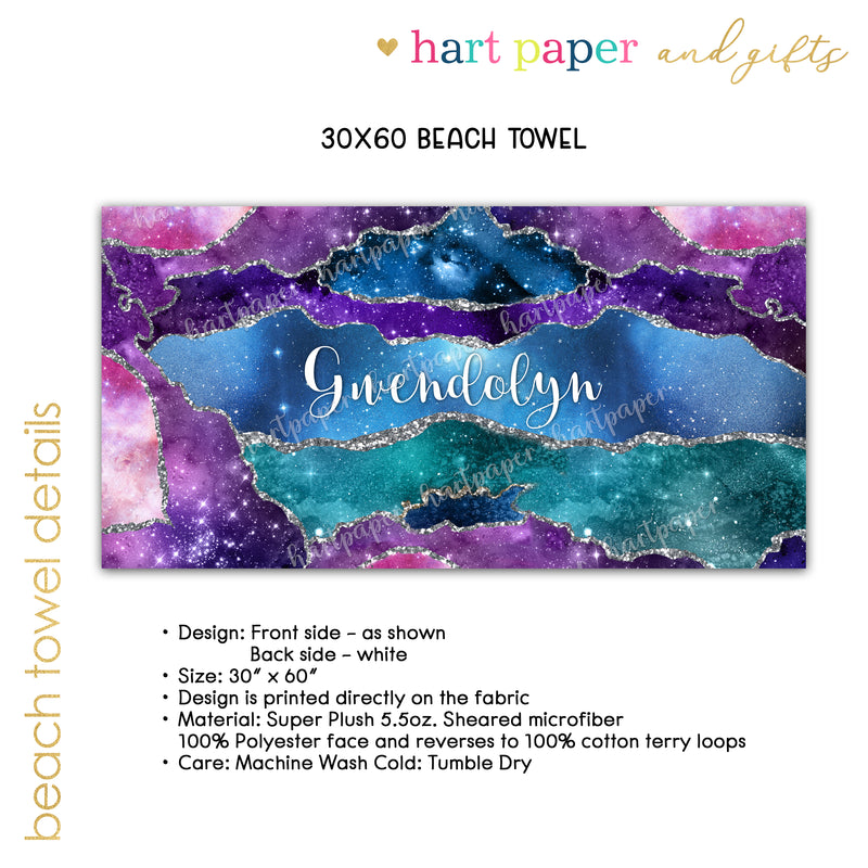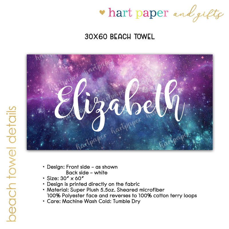 Galaxy Personalized Beach Towel • Custom 30x60 Swimming Swim Bath Bathroom Pool