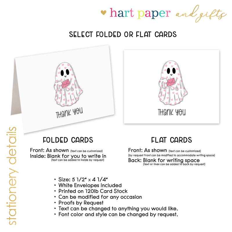 Ghost Thank You Cards Note Card Personalized Custom Stationery • Flat or Folded