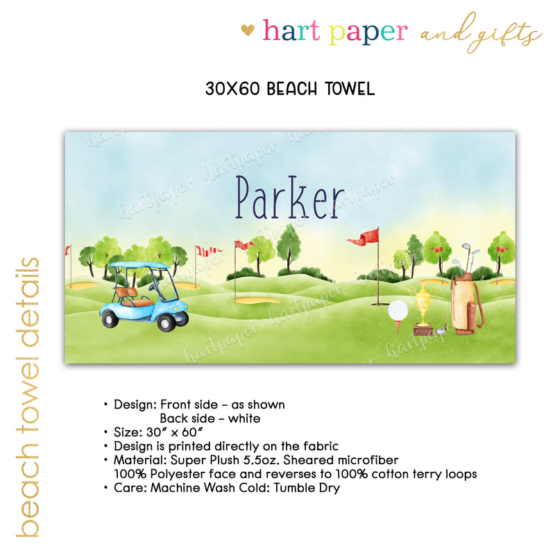Golf Sports Personalized Beach Towel • Custom 30x60 Swimming Swim Bath Bathroom Pool