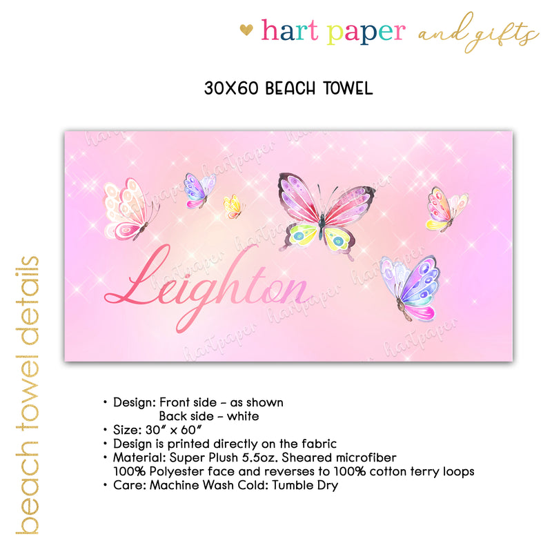 Butterfly Rainbow Personalized Beach Towel • Custom 30x60 Swimming Swim Bath Bathroom Pool