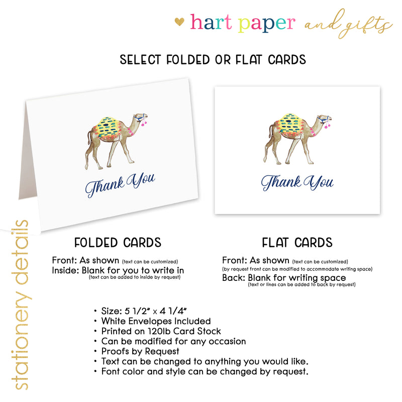 Camel Thank You Cards Note Card Personalized Custom Stationery • Flat or Folded