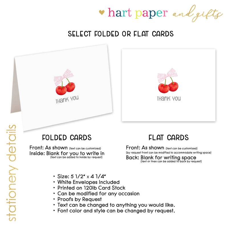 Cherry Thank You Note Card Personalized Custom Stationery • Fill in Blank, Lined or Blank Cards
