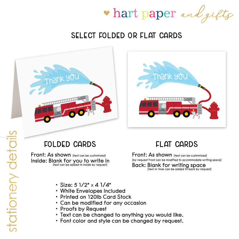 FIretruck Fire Truck Thank You Cards • Folded Flat Note Card Stationery