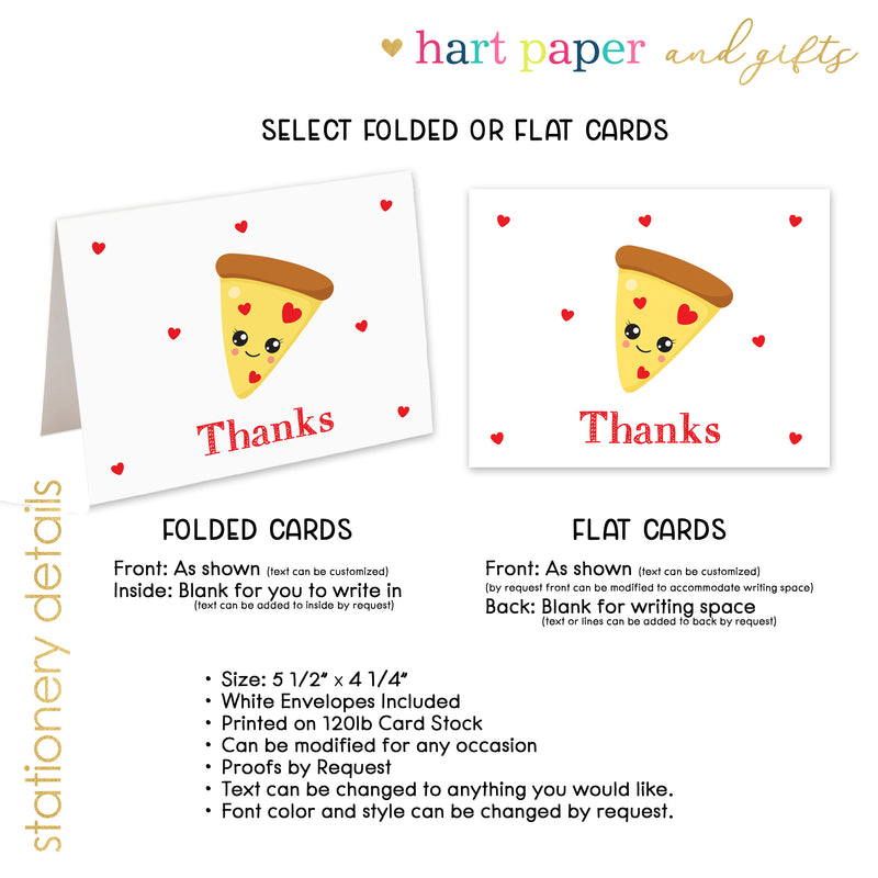 Pizza Thank You Cards Note Card Personalized Custom Stationery • Flat or Folded