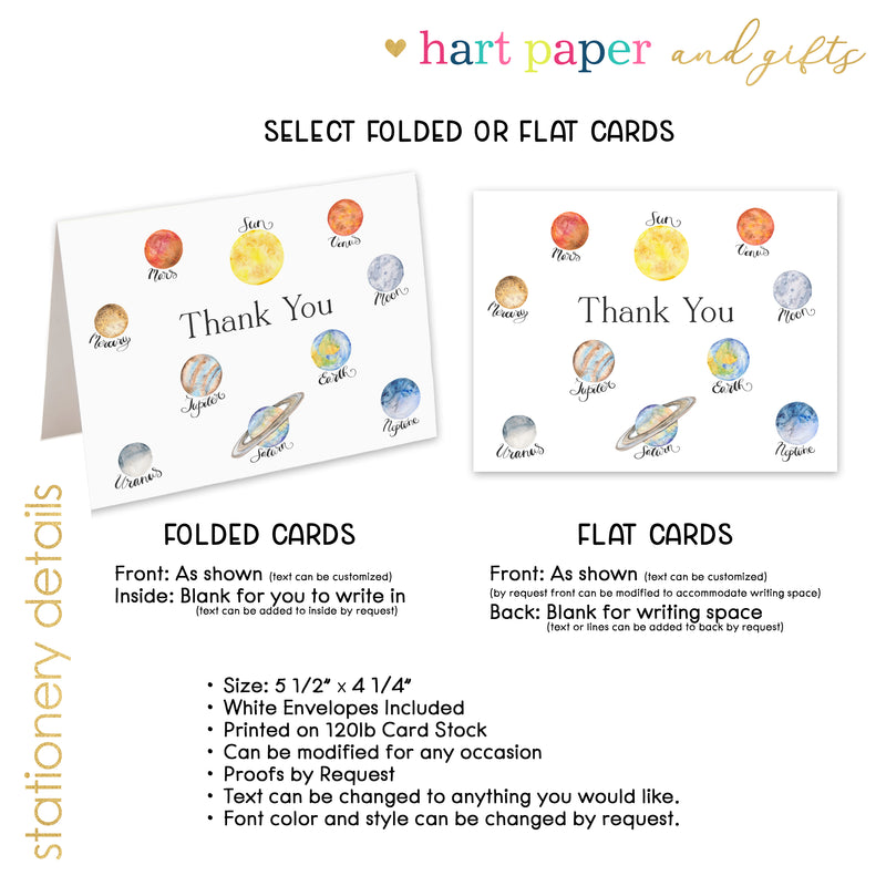 Planets Solar System Thank You Cards • Folded Flat Card Notecard Stationery