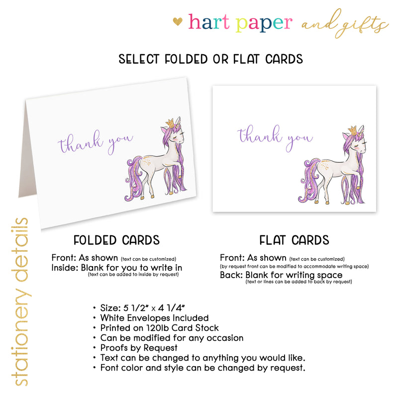 Purple Unicorn Thank You Cards Note Card Personalized Custom Stationery • Flat or Folded