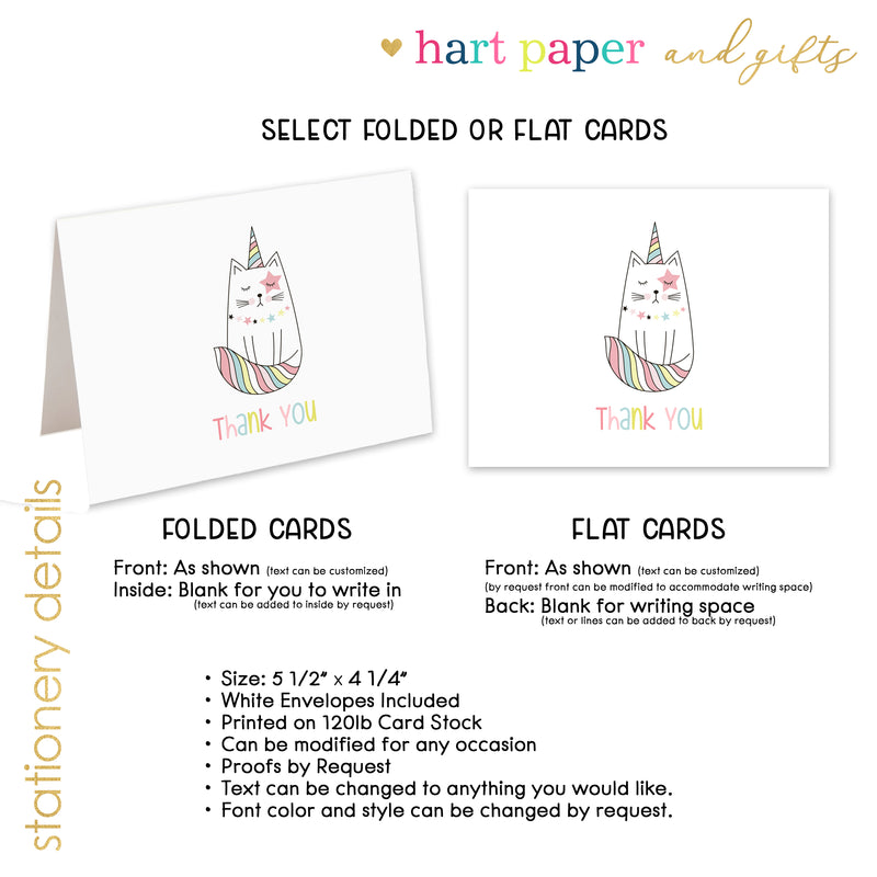 Rainbow Cat Thank You Cards Note Card Personalized Custom Stationery • Flat or Folded