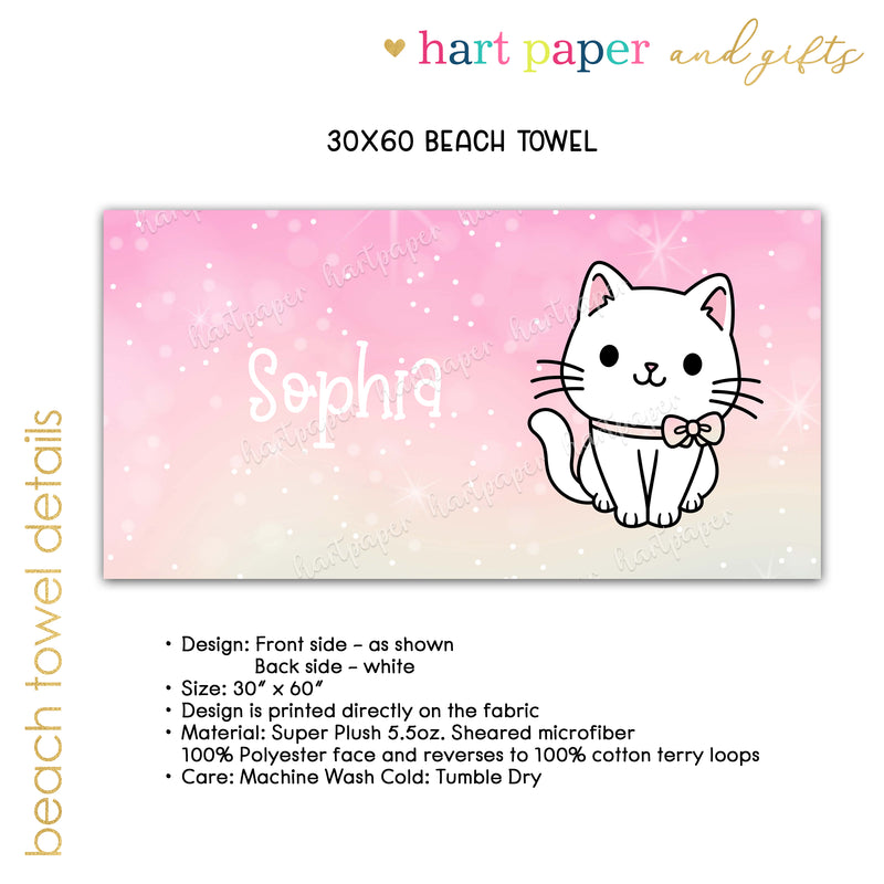 Rainbow Cat Personalized Beach Towel • Custom 30x60 Swimming Swim Bath Bathroom Pool