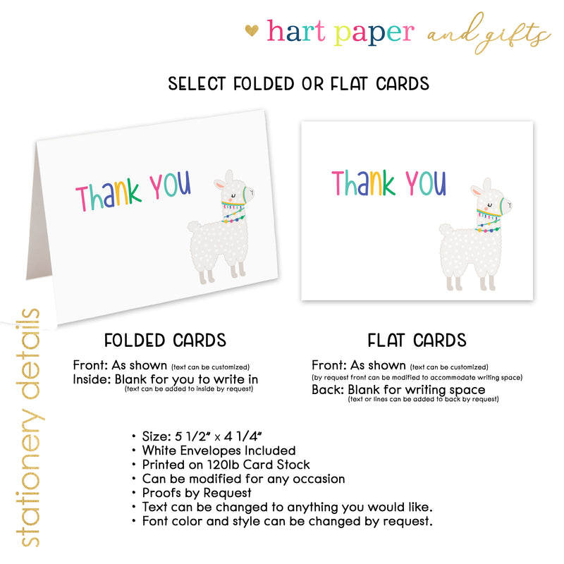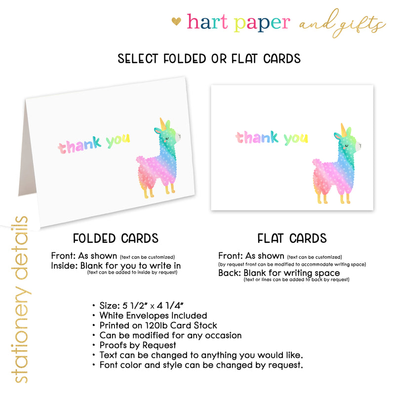 Rainbow Llama Thank You Cards Note Card Personalized Custom Stationery • Flat or Folded