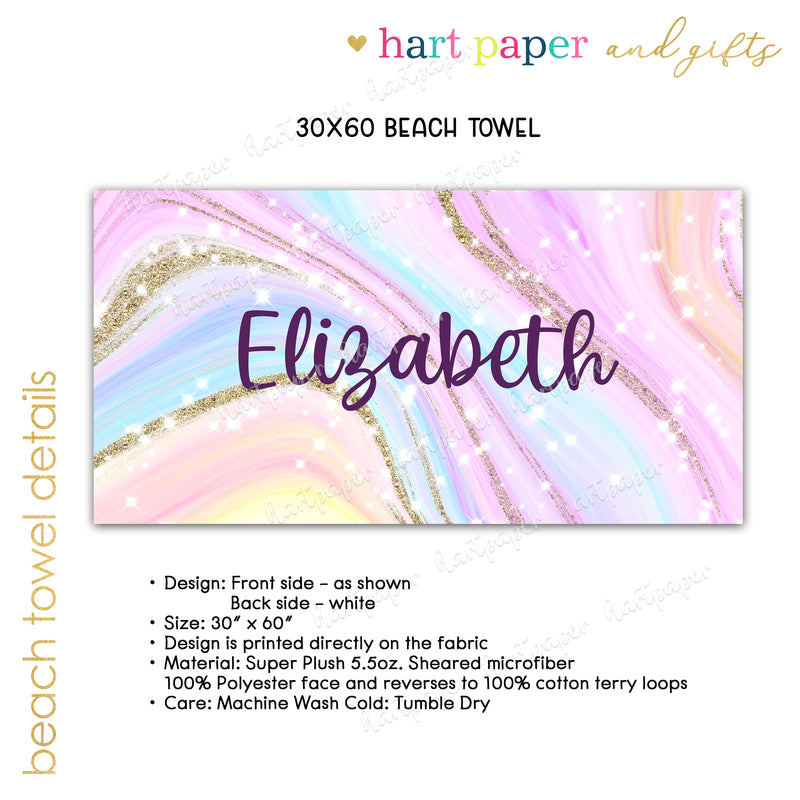 Rainbow Marble Personalized Beach Towel • Custom 30x60 Swimming Swim Bath Bathroom Pool