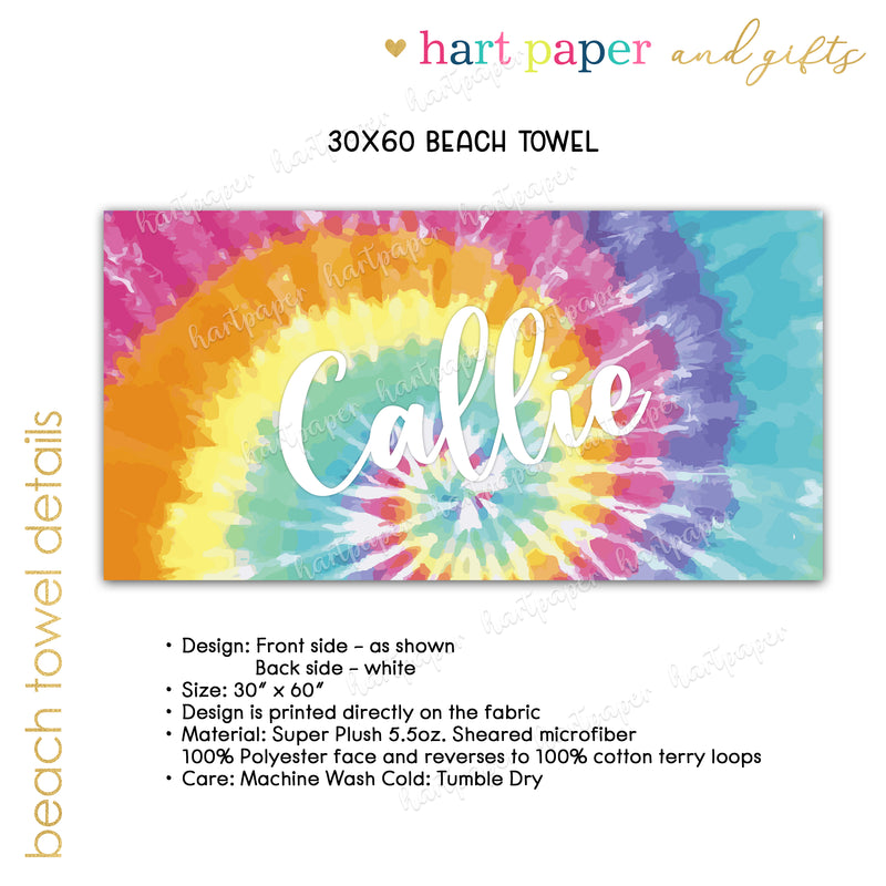 Rainbow Tie Dye Personalized Beach Towel • Custom 30x60 Camping Camp Swimming Swim Bath Bathroom Pool