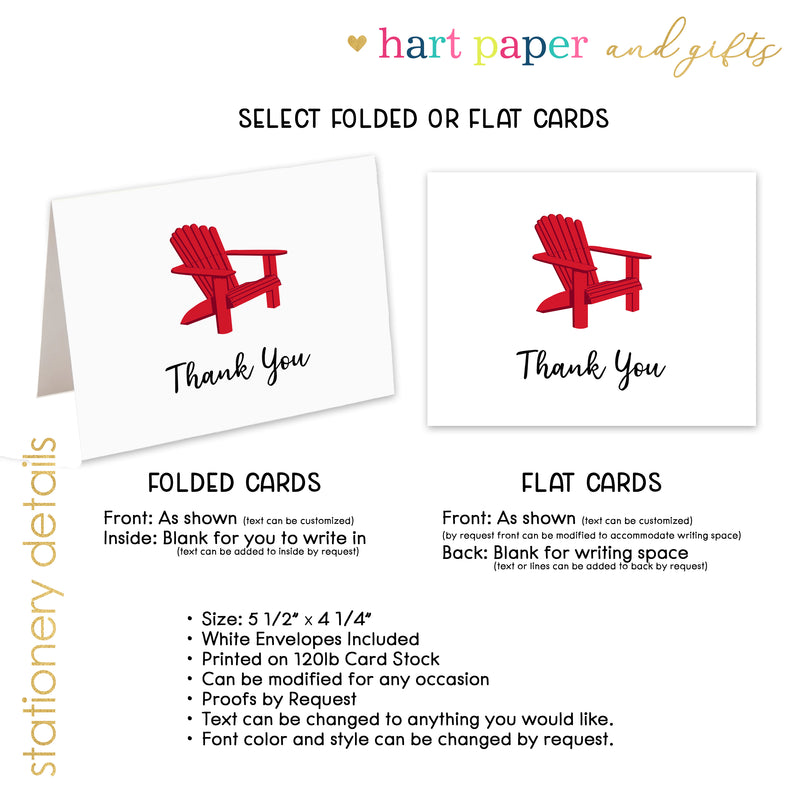 Red Adirondack Chair Thank You Cards • Folded Flat Card Notecard Stationery