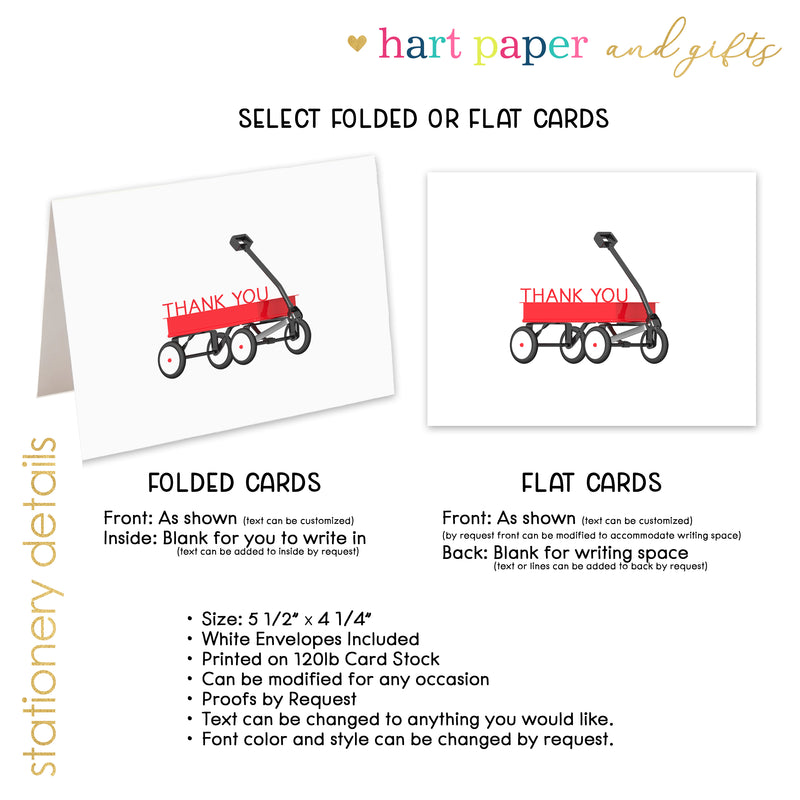 Red Wagon Thank You Cards Note Card Personalized Custom Stationery • Flat or Folded