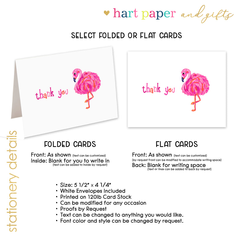 Sassy Pink Flamingo Thank You Cards Note Card Personalized Custom Stationery • Flat or Folded